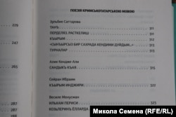 Нельзя не упомянуть и более свежий факт, который отражен в книге как бы по умолчанию. Тексты и переводы на крымскотатарский язык в книге публикуются частью на кирилице, частью на латинице. Той латинице, которая была присуща крымскотатарскому языку после отхода от арабской графики в 1928 году и до насильственного перевода его на кириллицу в 1939 году, и которая наиболее органично отражает его фонетические особенности. Решение об этом было принято в 1991 году вторым курултаем крымскотатарского народа и было подтверждено и развито в решениях органов народного самоуправления в 1991-93 годов. Сейчас Кабинет министров Украины принял решение о переводе алфавита крымскотатарского языка на латинскую графику. Как отметил министр реинтеграции оккупированных территорий Украины Алексей Резников, «крымскотатарский язык будет развиваться в большей гармонии с другими тюркскими языками, которые после 1991 года перешли или сейчас переходят на латинский алфавит».