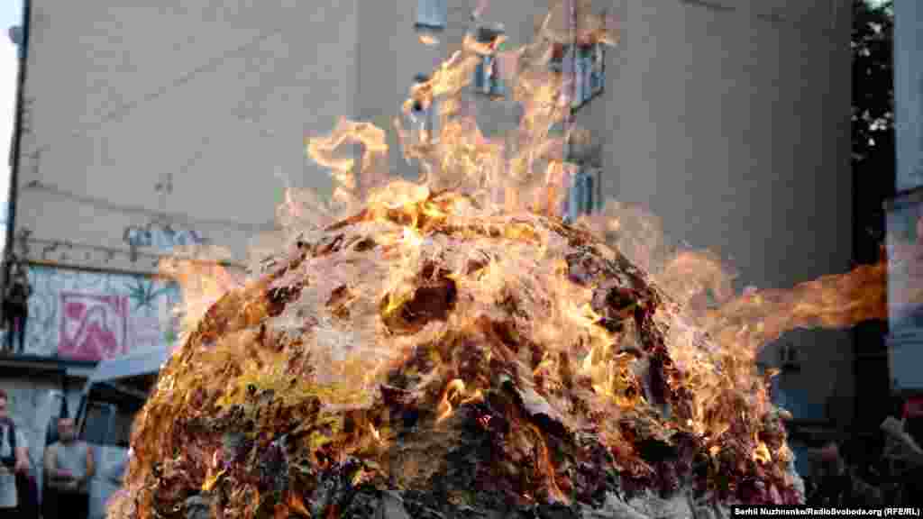 Сожжение ваты. В Киеве подожгли огромный шар в поддержку политзаключенных (фоторепортаж)
